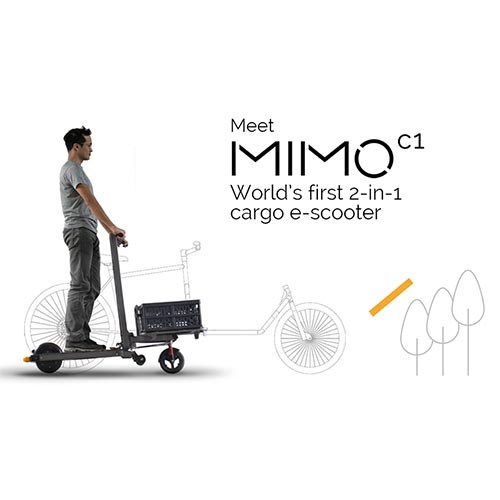Left: first transformable prototype 2019. Right: MIMO C3 transformable three wheel cargo e-scooter 2025